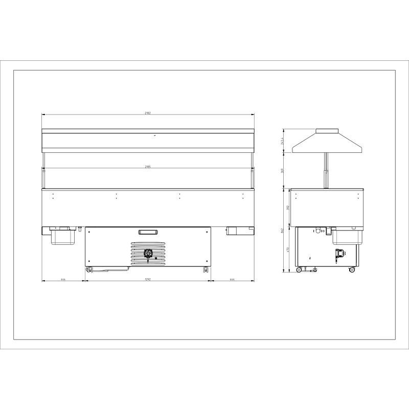 Équipement prévu pour bacs GN 1/4, 1/3, 1/2, 2/3, 1/1 et 2/1, hauteur max 150 mm. Les bacs (jusqu'à une hauteur de 65 mm) peuvent être superposés sur différents niveaux.