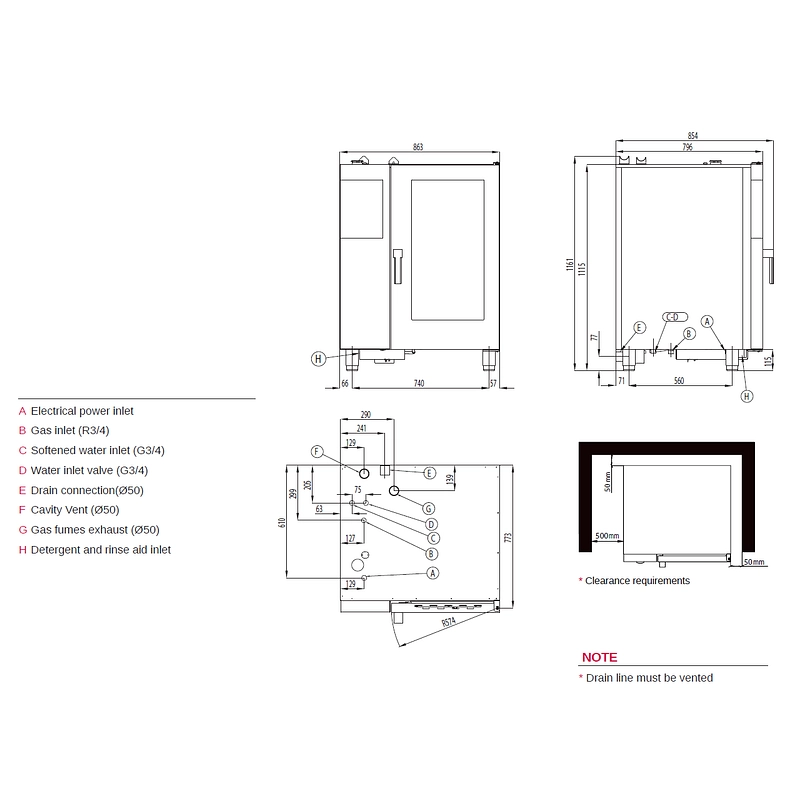 Dimensions extérieures (LxPxH) (mm)863x854x1161