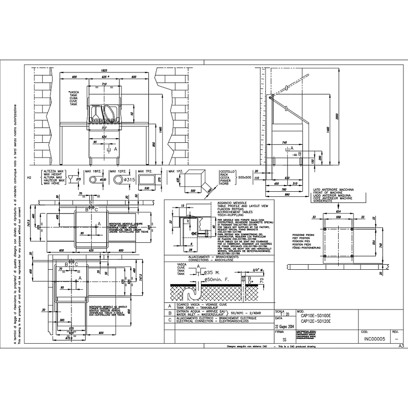 Casiers, tables d'entrée et de sortie, pompe de vidange disponibles en accessoire