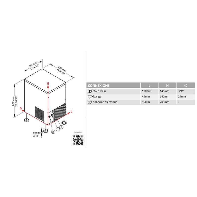 • Livrées avec tuyau d’arrivée d’eau, d’évacuation et pelle à glace.