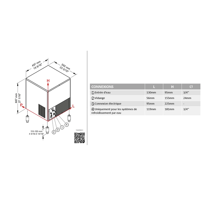 • Livrées avec tuyau d’arrivée d’eau, d’évacuation et pelle à glace.