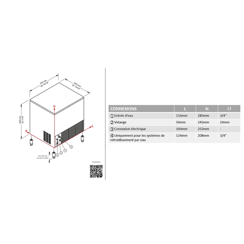 • Livrées avec tuyau d’arrivée d’eau, d’évacuation et pelle à glace.